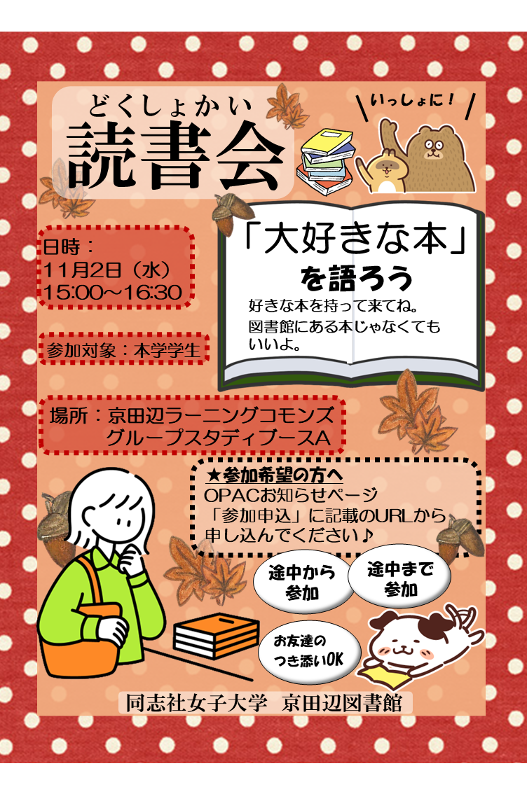 「あなたの大好きな本」について語りませんか?参加希望の方は以下のURLから参加申し込み