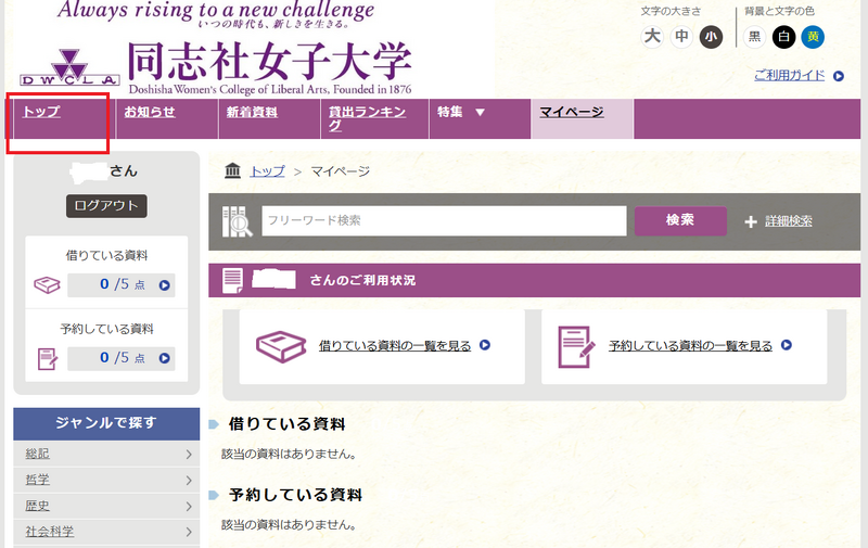 2.OPACのログイン後のページから